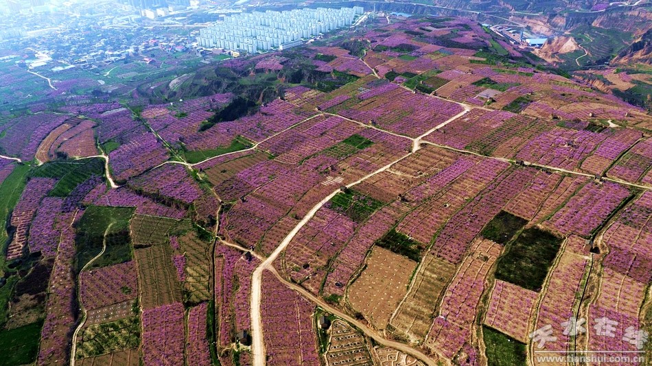 (秦安縣西川鎮(zhèn)李堡村桃園景區(qū) 天水在線4月14日航拍)