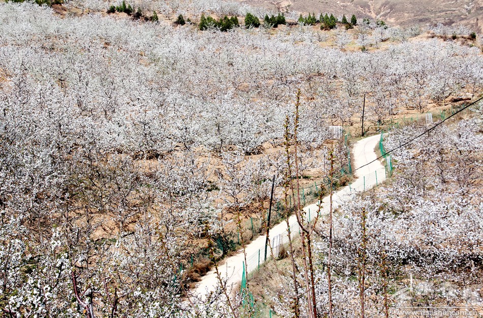 “開(kāi)花占得春光早,雪綴云裝萬(wàn)萼輕!庇值搅藷熶仚烟一ㄩ_(kāi)的時(shí)候,你不防從天水城北側(cè)驅(qū)車(chē)進(jìn)入羅峪溝,五分鐘就能到達(dá)煙鋪村里,置身大櫻桃的花海中,感受花如雪、花如海式的醉美與震憾!