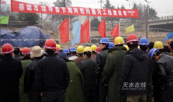 經(jīng)過兩年多的周密籌備,2005年10月29日,天水市藉河城區(qū)段生態(tài)環(huán)境綜合治理工程正式開工。開工典禮之后,藉河工地就開始了熱火朝天的建設(shè),去年冬天天氣再冷也沒有歇息過一天,就連春節(jié)也是在工地上過的。為了趕在汛期來臨之前完成河道疏浚工作,天氣再熱,各施工單位也加班加點(diǎn),奮戰(zhàn)在工地。經(jīng)過幾個月的緊張施工,目前,堤防建設(shè)、河道疏浚、道路擴(kuò)寬工作已經(jīng)基本結(jié)束,其它相關(guān)工程正在加緊施工。