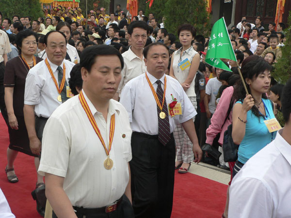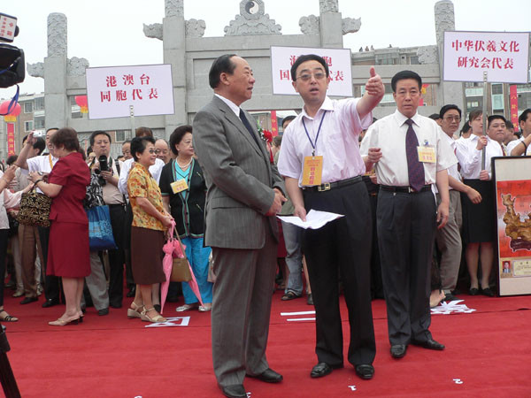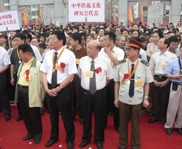 古柏森森迎赤子,心香裊裊祭先祖。2005年7月3日上午,由甘肅省人民政府主辦的公祭伏羲大典在“羲皇故里”天水市隆重舉行。全國(guó)人大副委員長(zhǎng)許嘉璐以及港澳臺(tái)同胞代表、海外僑胞代表、國(guó)際友人等出席大典。