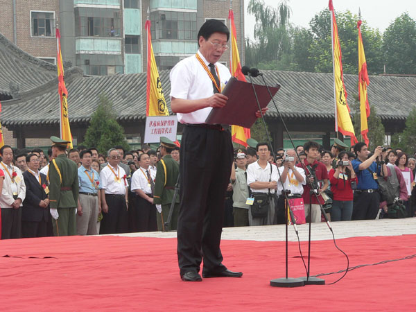 ▲圖為甘肅省人民政府常務(wù)副省長(zhǎng)徐守盛恭讀祭文 攝影:天水在線