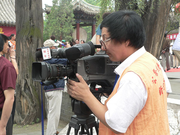 ▲圖為中央電視臺(tái)記者采訪公祭伏羲大典 圖片拍攝:天水在線