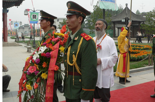 維公元二OO五年七月三日,歲在乙酉年之五月二十七日,中華兒子,匯聚天水,謹(jǐn)以太牢鮮花雅樂(lè)之儀,致祭于中華民族人文始祖伏羲氏曰:
