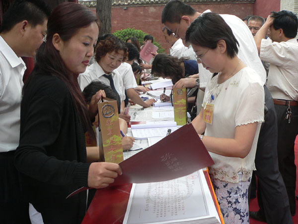 ▲圖為各界人士向伏羲廟捐款 圖片拍攝:天水在線