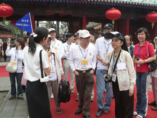 ▲圖為“情系敦煌——兩岸文化聯(lián)誼行”的近百名港澳臺(tái)文化界嘉賓參加伏羲大典 攝影:天水在線