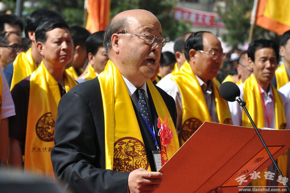 ▲甘肅省人大常委會原副主任、甘肅省伏羲文化研究會理事長程有清主持儀式 攝影:天水在線