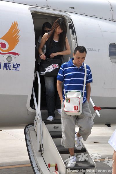 ▲參加“和諧之夜”大型明星演唱會的演員乘坐飛機抵達天水機場 |