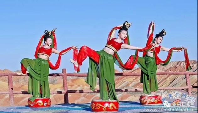 5月1日,記者在張掖丹霞國家地質公園七彩虹霞臺看到,來自甘肅影響力互聯(lián)網(wǎng)服務有限公司的“絲路飛天舞者”正在展示婀娜多姿的“絲路飛天”舞姿。她們身著霓裳、頭戴搖冠、手拖飄帶,仿若下凡仙女,舉手投足間,衣裙飄曳、巾帶飛舞,盡顯西域風,精彩的表演引來許多游客駐足觀看!皬堃醋鳛橐蛔鶜v史文化古城,有它自己獨有的特色,飛天也是河西走廊千年以來的歷史文化,這里不僅有高山流水,也有大漠孤煙。我們希望以飛天舞和自然風光相結合的方式,通過互聯(lián)網(wǎng)和自媒體平臺,將豪情萬丈的張掖風光展現(xiàn)給大家,為家鄉(xiāng)的旅游事業(yè)做出一份貢獻,希望大家能夠認識張掖,了解張掖,支持張掖,張掖這座千年古城值得被所有人看到!苯z路飛天舞蹈表演者程昕玥說。